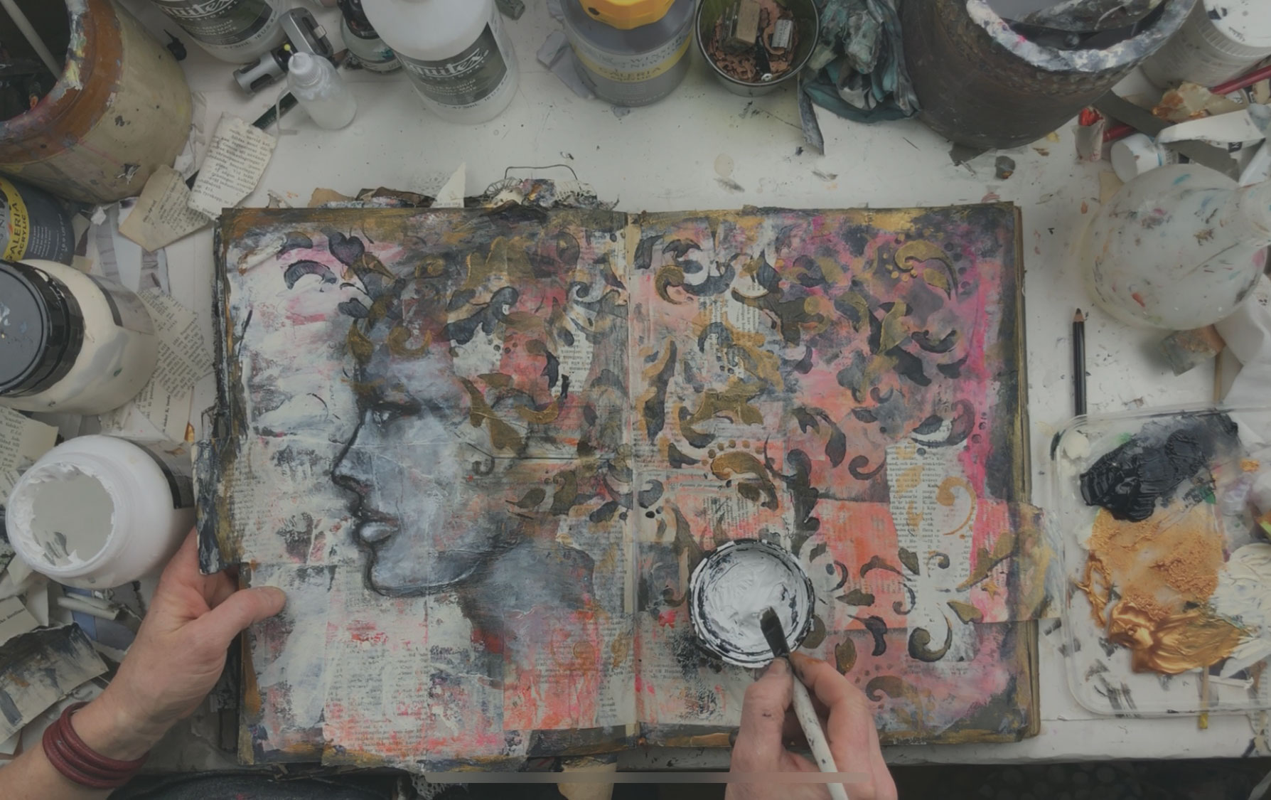 Explore the free-flowing art process in this class, moving intuitively between journal and canvas without constraints.