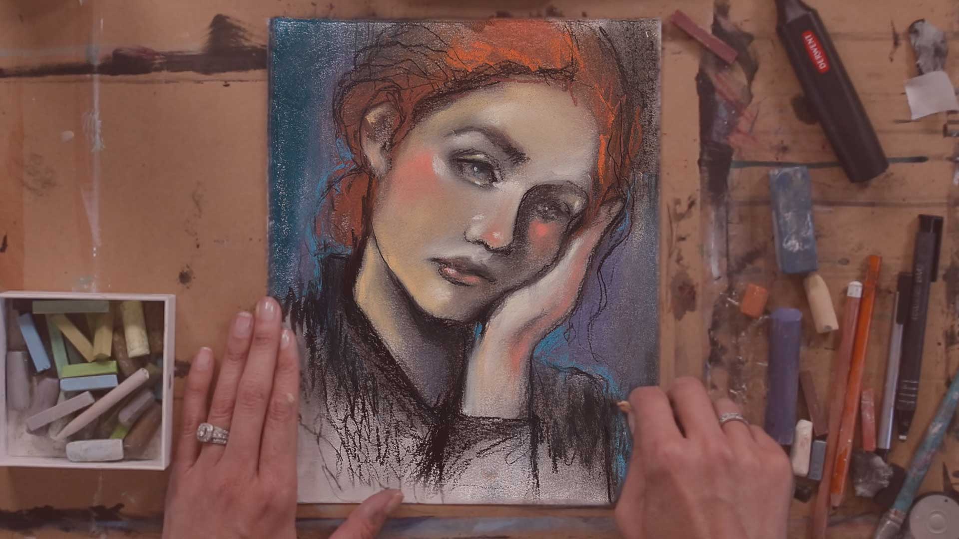Explore expressive portraiture in our mixed media class, drawing inspiration from Joan Eardley, using charcoal and pastels.