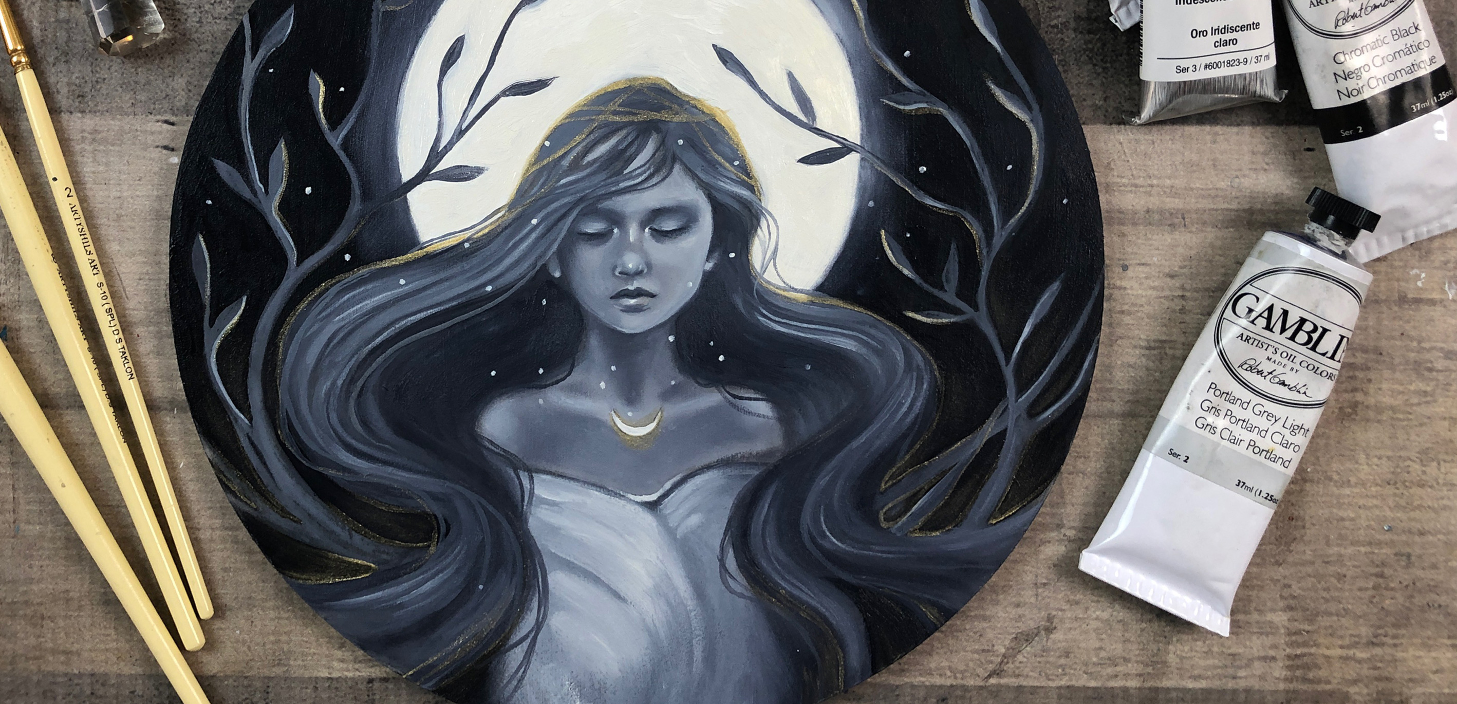 You can do this project in your sketchbook or on a separate substrate. It would be a great idea to do a few sketches of your design in your sketchbook too before you approach the canvas. Maybe make some small sketches and explore your design or you are welcome to work from mine.
