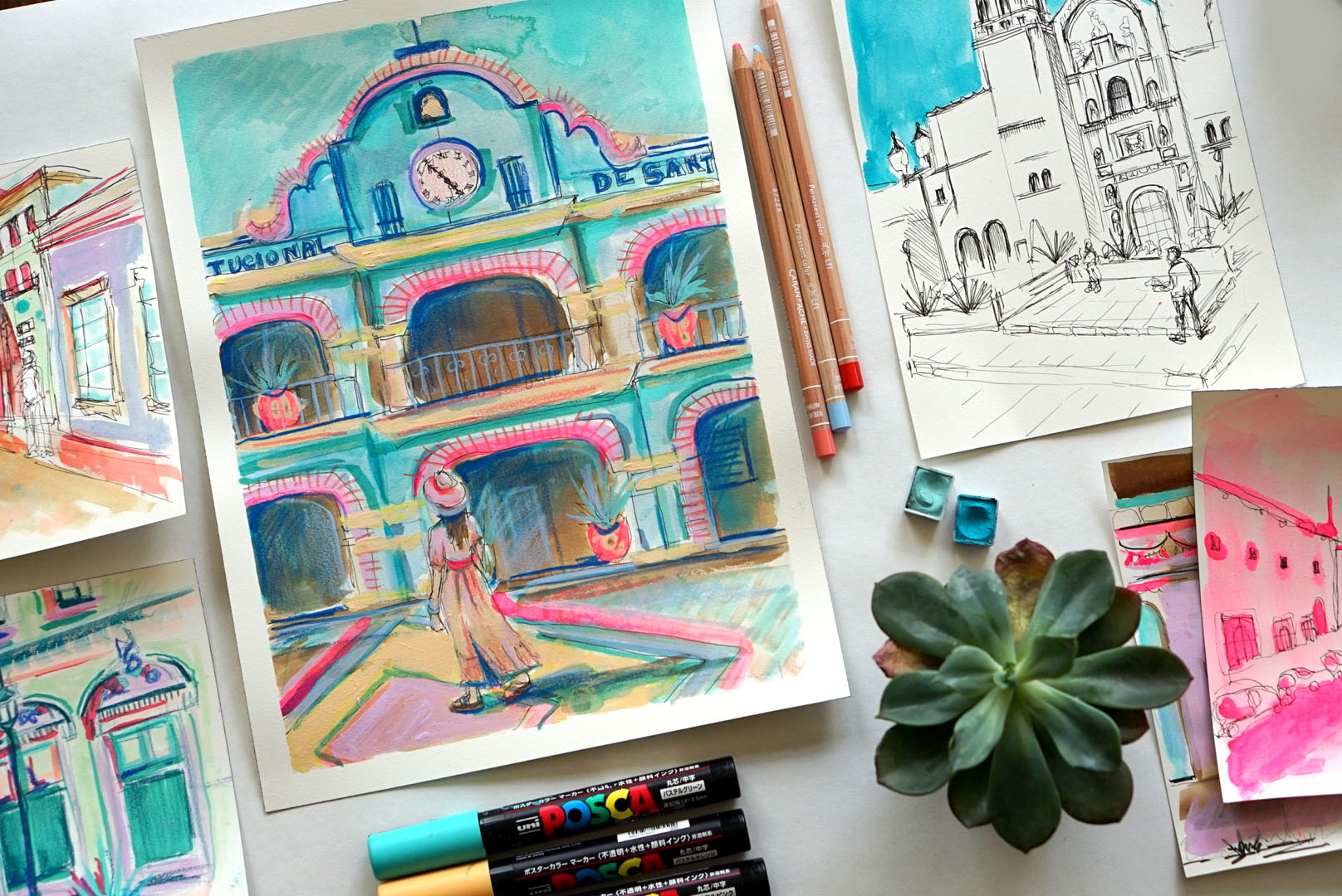 Embark on an art journey with Kristy, transforming travels into vibrant sketches with dynamic techniques.