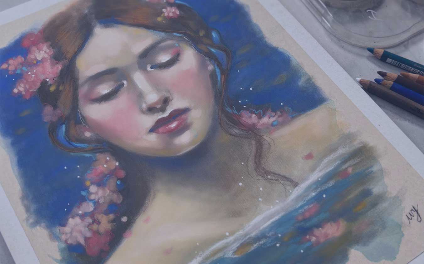 In this simple portrait, we will focus on using watery colors combined with soft pinks, greens and yellows.